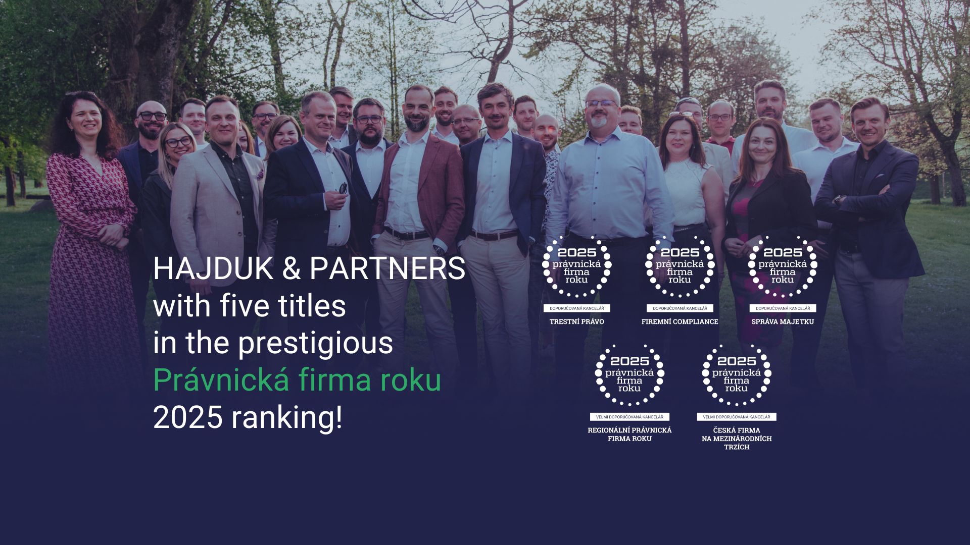 Podczas tegorocznej edycji prestiżowego rankingu Právnická firma roku nasza kancelaria HAJDUK & PARTNERS została wyróżniona w jednym z najważniejszych czeskich rankingów prawniczych!